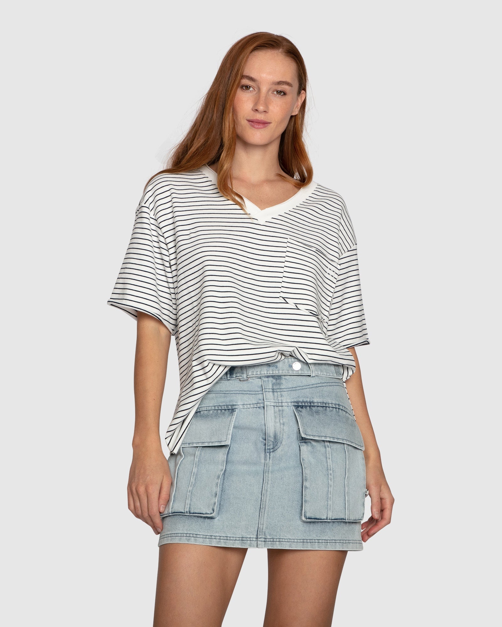 Brave Soul Oversized Striped T-Shirt - Black/White