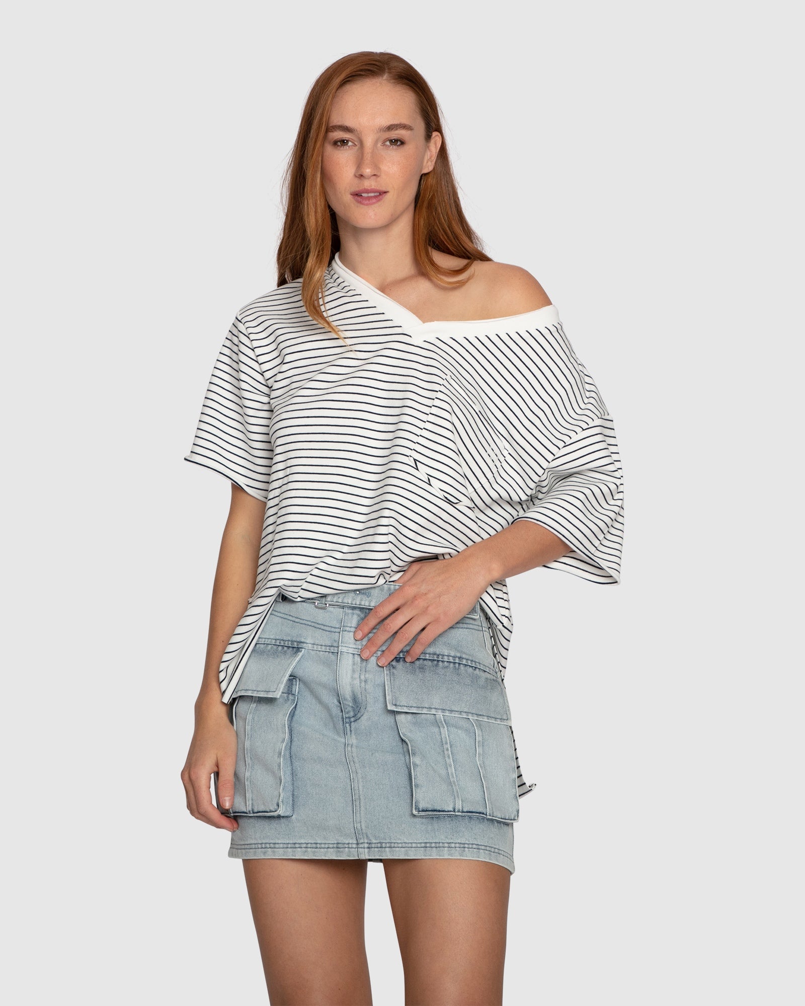 Colour Brave Soul Oversized Striped T-Shirt - Black/White Brave Soul Oversized Striped T-Shirt - Blue/White