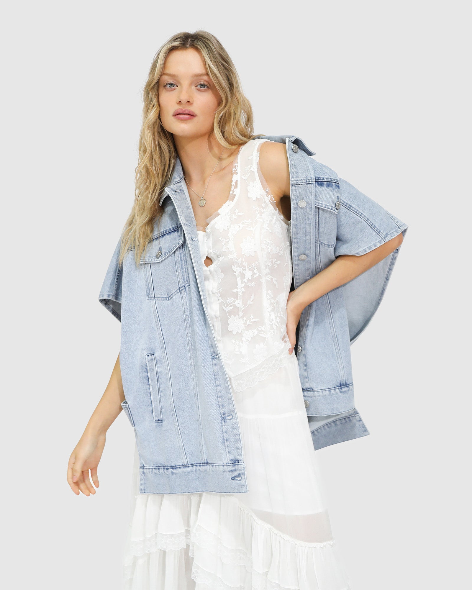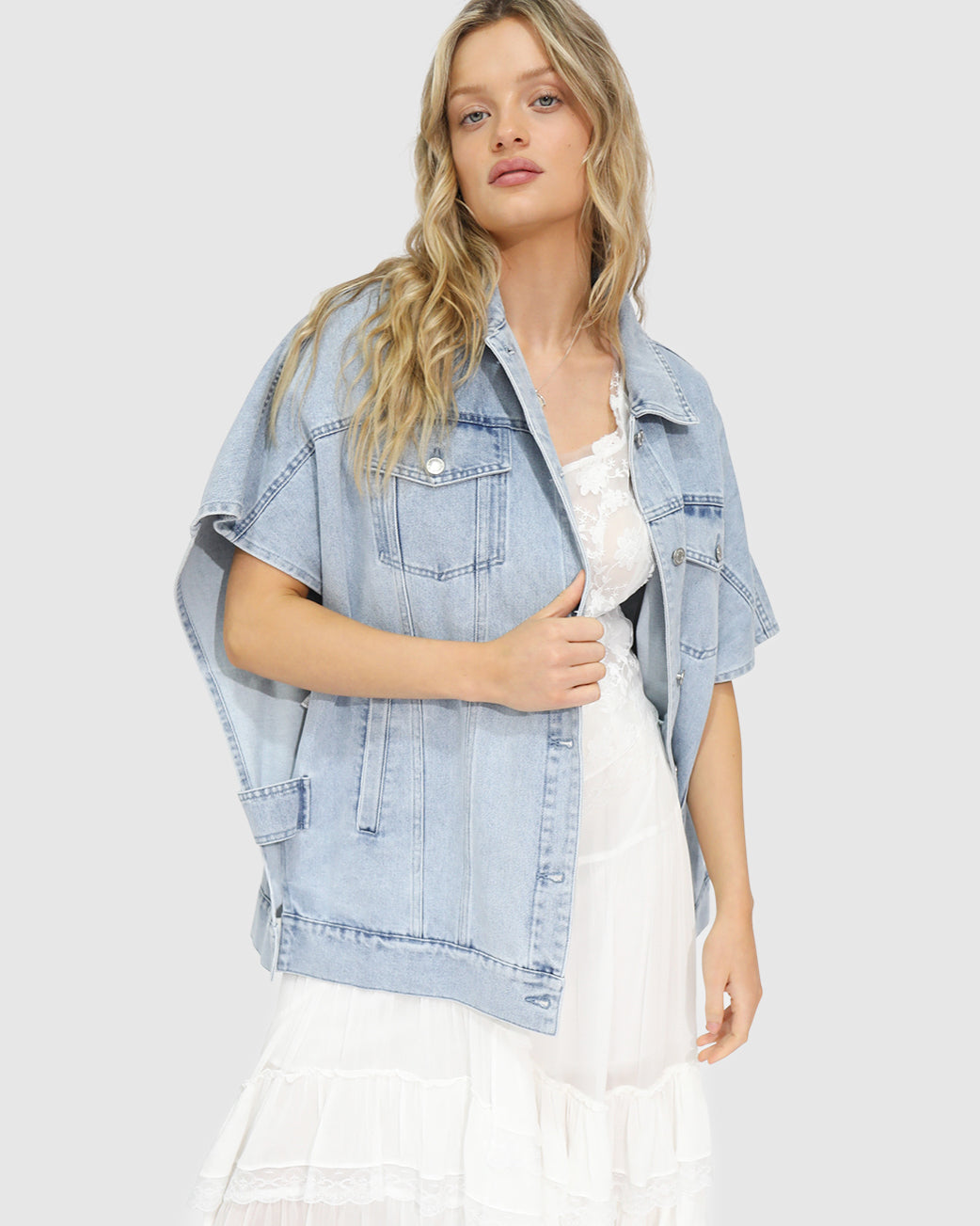 Stay cool in style with the California Soul Oversized Denim Vest. Crafted from 100% cotton denim, this relaxed piece features dropped shoulders, open sides, and adjustable button tabs for an airy, laid-back fit. Designed as a true transeasonal layer, it’s perfect over a singlet for light coverage on warm days or styled over long sleeves in cooler months for a cosy, effortless look.