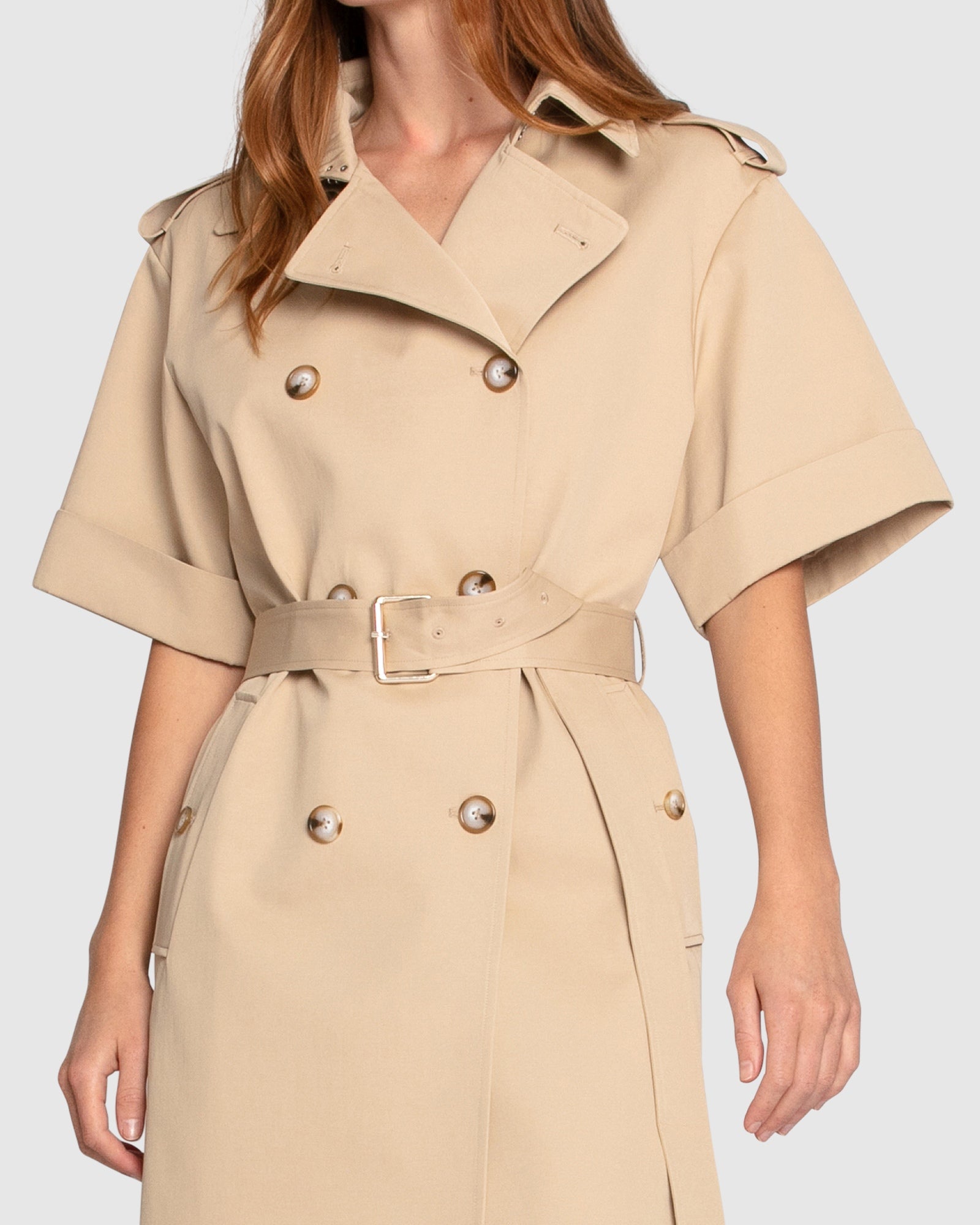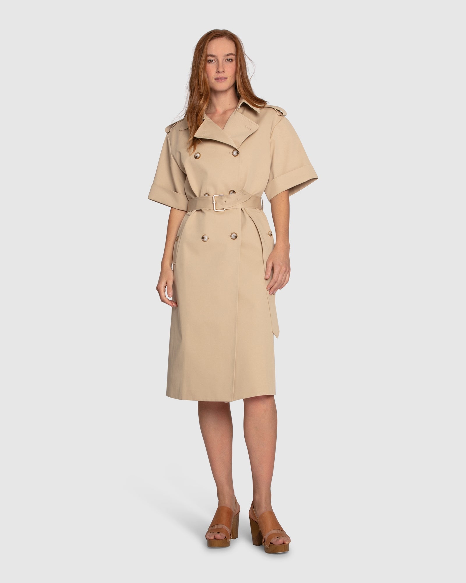 Dust & Daring Short Sleeve Trench Style Dress - Camel
