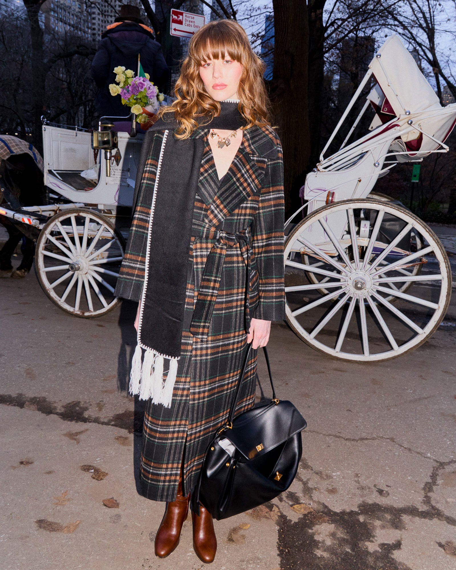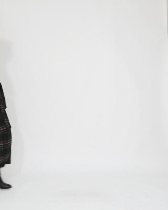 Heart To Heart Wool Blend Large Collar Maxi Coat - Black Plaid