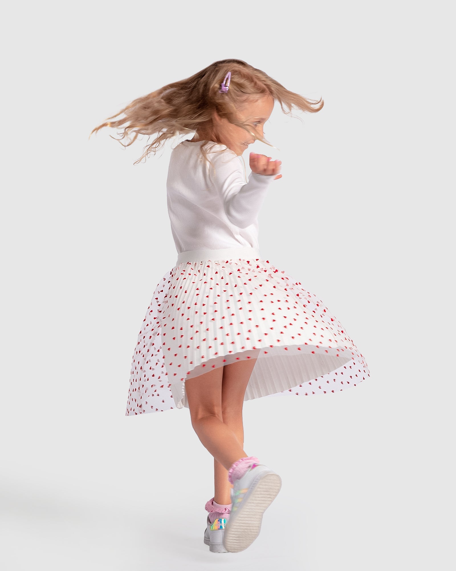 The In My Heart Reversible Skirt will quickly become your little girl’s go-to choice for any occasion. Destined to become her all-time favourite, allowing her to play and discover her own style. Wear it with the hearts on the outside for a sweet and charming look, or flip it to showcase the velour for a classy touch.