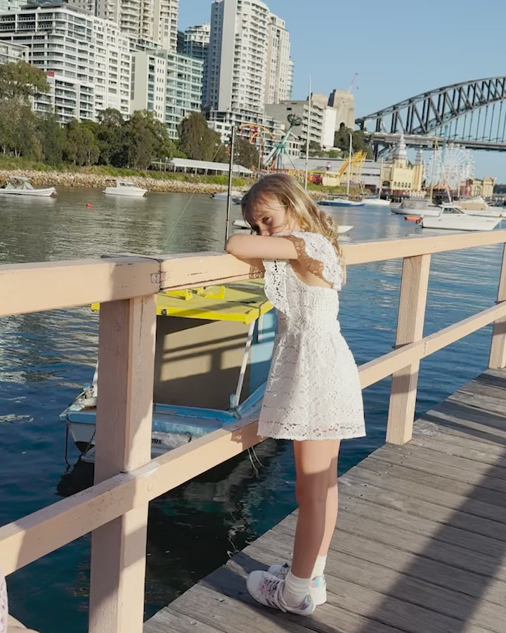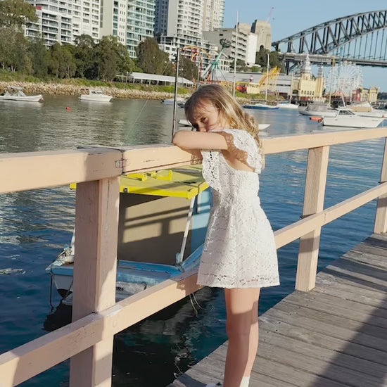 The Love Story Crossover Back Lace Dress is a dreamy and elegant piece that’s perfect for special occasions. Made from delicate lace, this white dress features enchanting angel wing sleeves that add a whimsical touch to the design. The elastic waist ensures a comfortable and flattering fit, while the invisible side zipper keeps the silhouette sleek and refined. The standout detail is the crossover open back, giving this dress a unique and romantic flair. Whether she’s twirling at a wedding or attending a family celebration, the Love Story Lace Dress will make her feel effortlessly graceful.