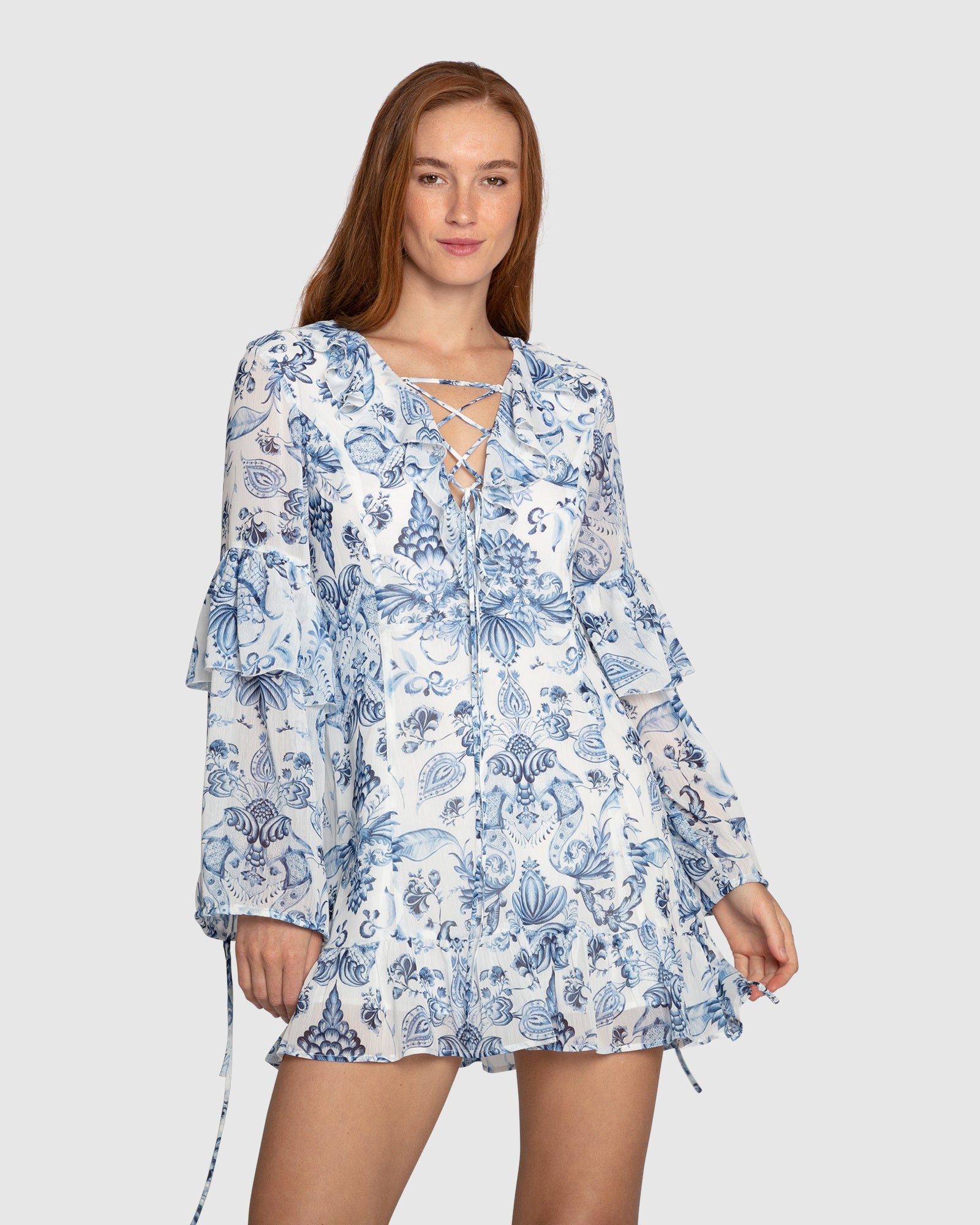 Walk into the warmer seasons wearing the Mad About You Floral Print Mini Dress, featuring light ruffles, drawstring sleeves and an adjustable laced neckline, it is a summer essential that's equal parts romantic and easy to wear.