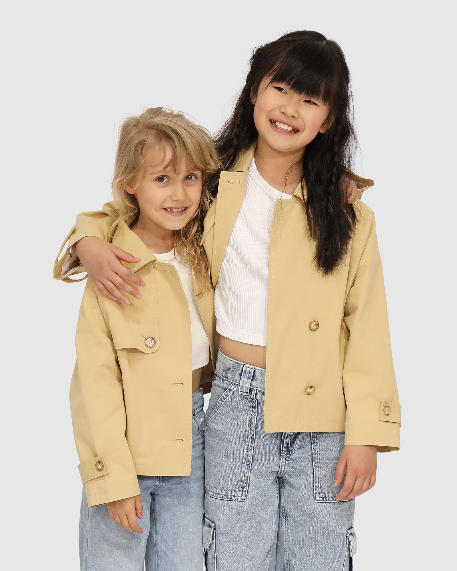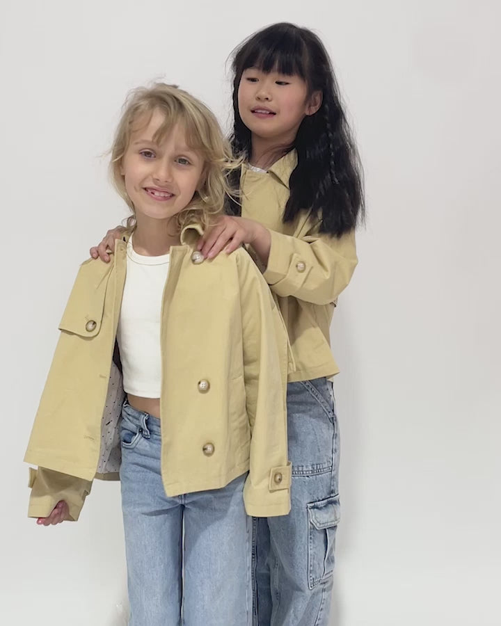 The Matilda Cropped Trench Coat is a modern twist on a timeless classic, designed for those in-between weather days. Crafted in a versatile khaki tone, this cropped trench exudes effortless style with its clean lines and sophisticated silhouette. Perfect for layering, it provides just the right amount of warmth for mid-season weather while maintaining a lightweight feel. The tailored fit, button closure, and iconic trench detailing make this coat a chic, functional addition to her wardrobe. Whether paired with jeans or a dress, the Matilda Cropped Trench Coat offers a polished look for any casual or formal occasion.