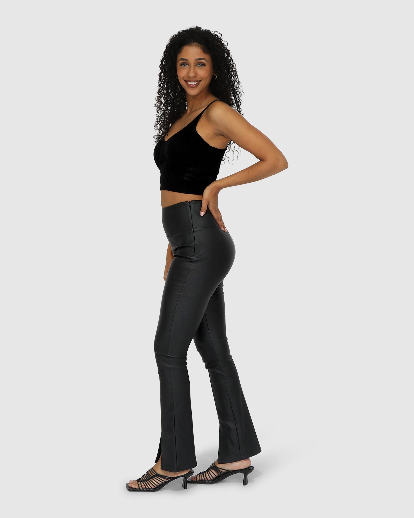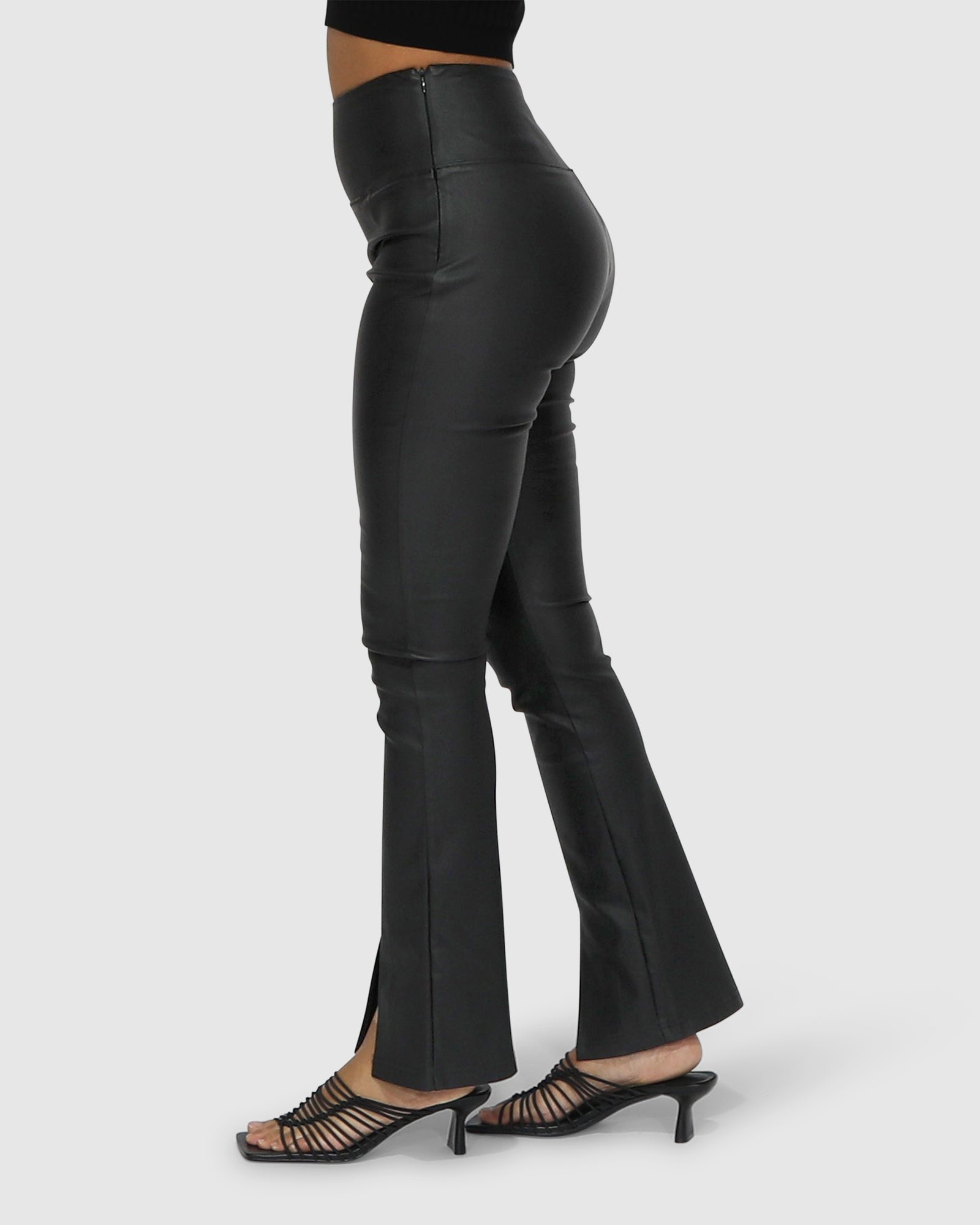 Our best selling “City Slicker” has a new sister! The Midnight Rider Bootleg Pant features the same flattering, comfortable waistband and high stretch leather-look coated fabric that we all love, with added front seams and splits to create the perfect bootleg silhouette – a must have for every wardrobe.