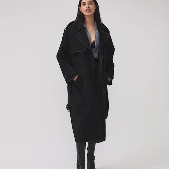 Colour Million Reasons Wool Blend Belted Coat - Black