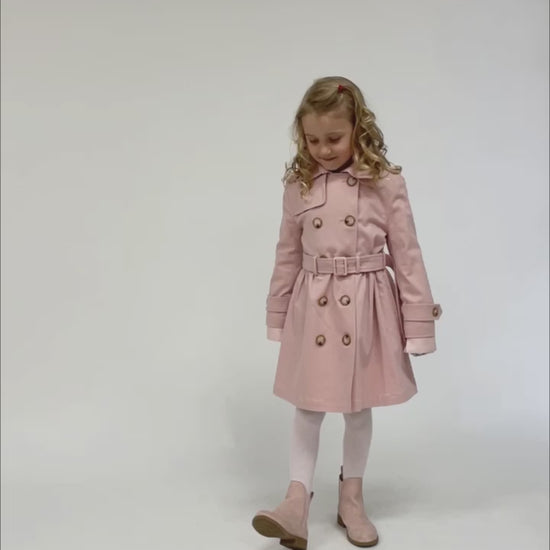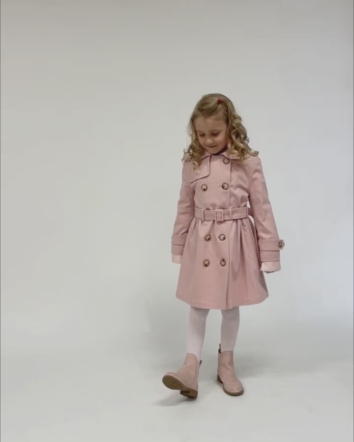 Elevate your little one's wardrobe with our Miss Sunshine Girls Trench Coat, a true fashion essential with a touch of whimsy. Crafted from a durable yet soft heavy cotton twill, this double-breasted coat exudes timeless charm while offering a modern twist.