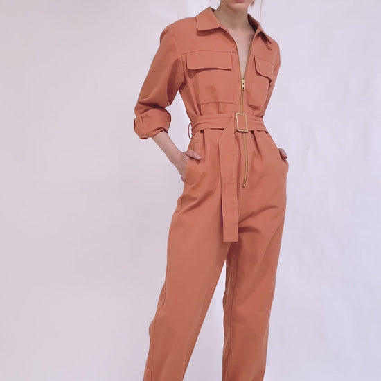 Our Montana Utility Jumpsuit is crafted in a mid-weight cotton drill minimally styled and minimally styled. The perfect example of less-is-more, this jumpsuit looks equally chic paired with a statement heel as it does with your fave sneaker.