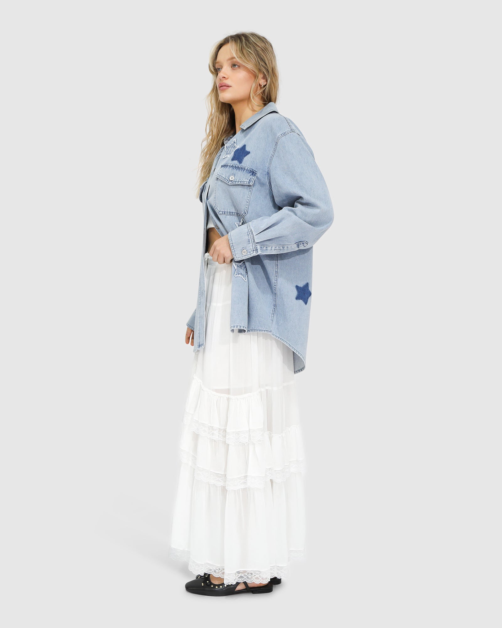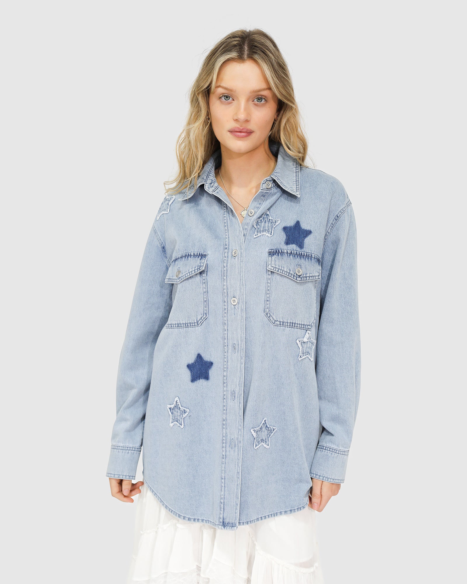 A year-round wardrobe staple, the Stargazer Patch Detail Denim Shirt can be worn as a top, layered as a lightweight jacket for the warmer months, or worn open over a bikini when it gets hot. With endless styling opportunities this shirt will be on high rotation every season.
