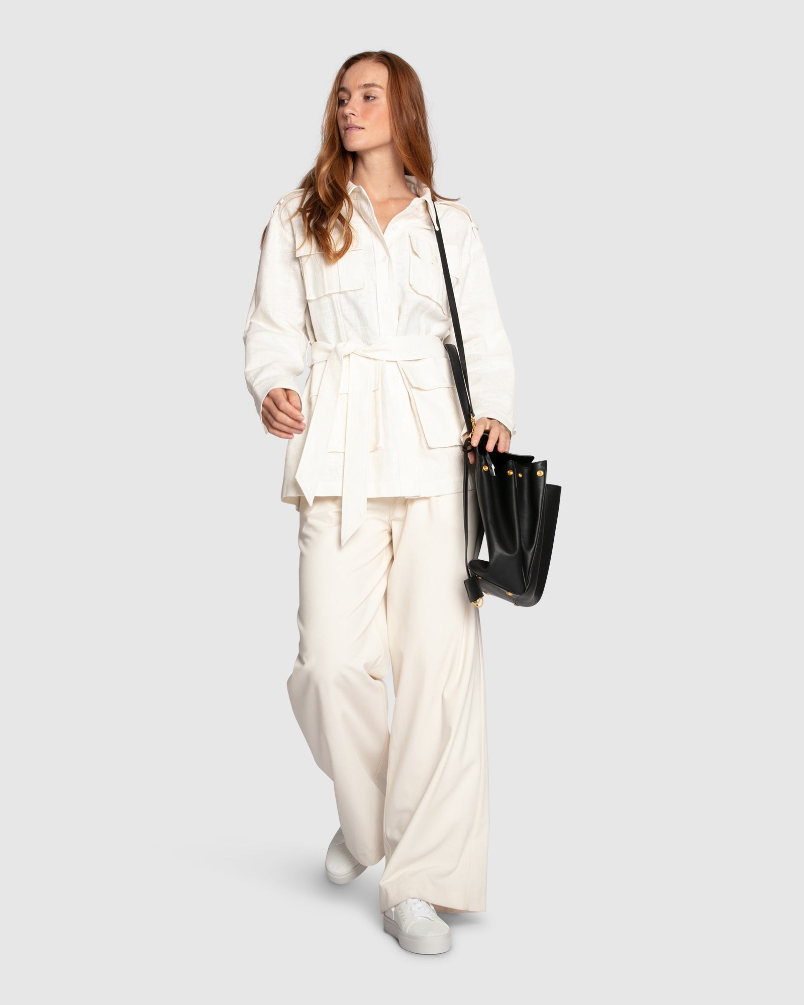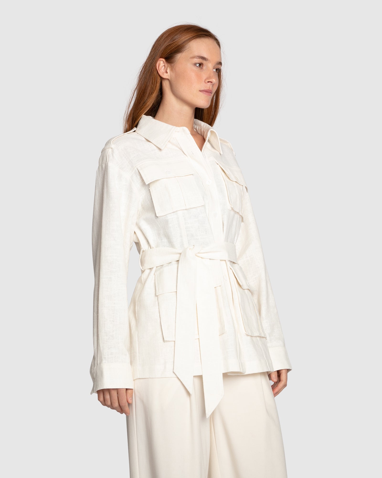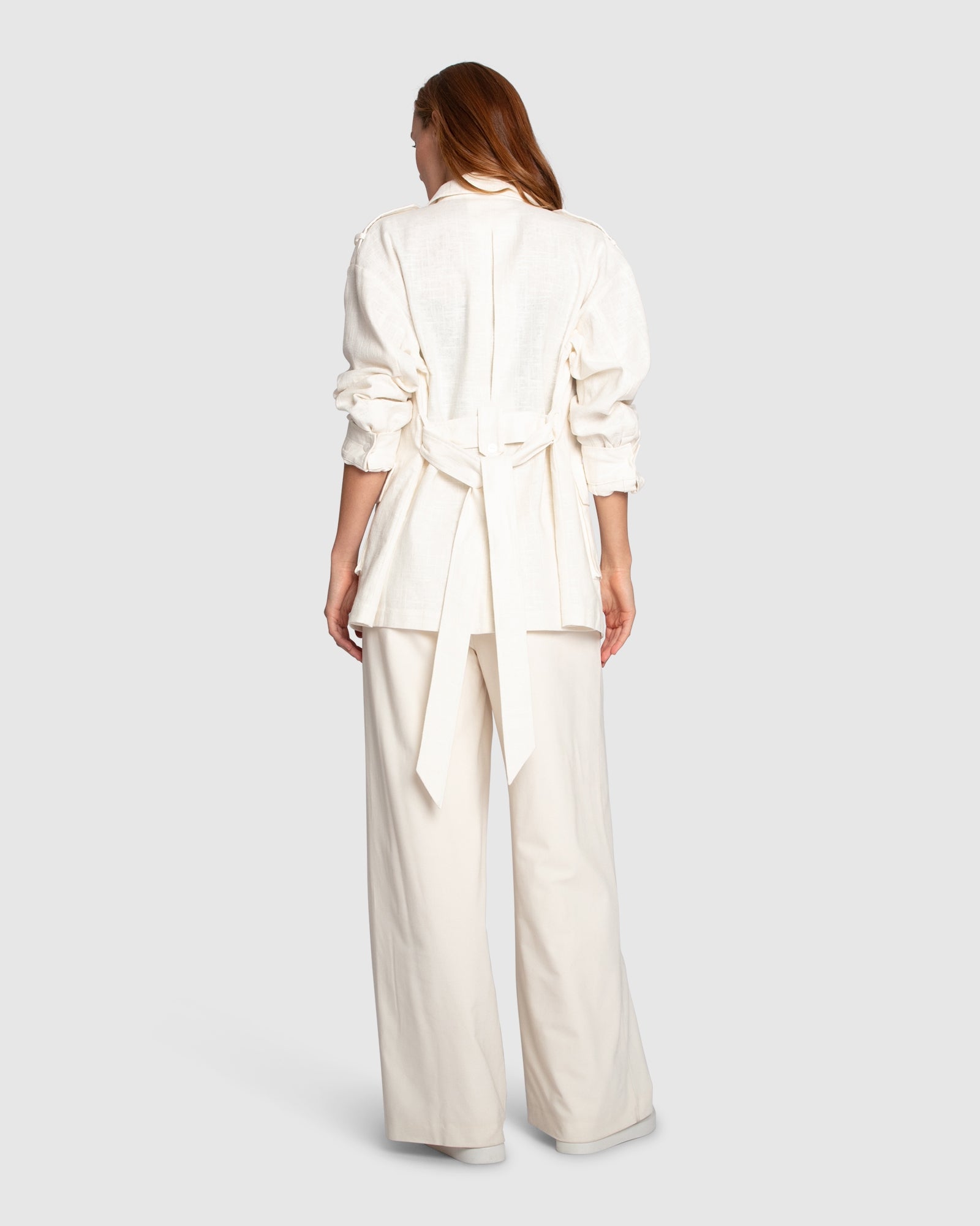 Lightweight and perfect for spring layering, the Still Storm Belted Safari Jacket is made from a breathable, unlined cotton-linen blend, and can be styled as a shirt or light jacket for breezy warm nights.