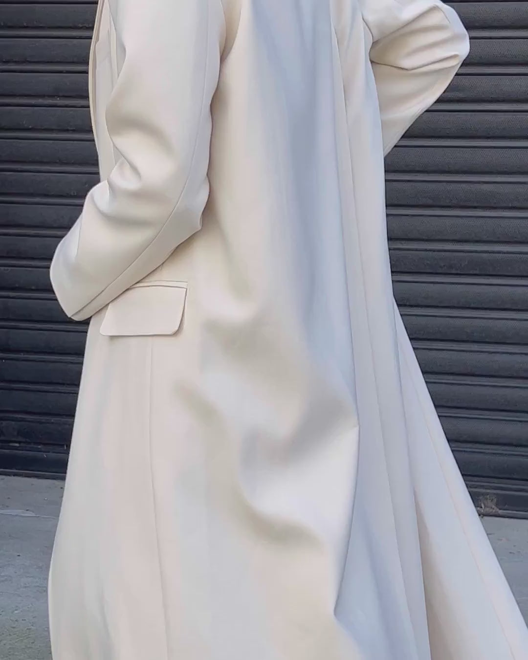 The Transcendent Asymmetric Split Hem Coat is a statement piece that elevates your wardrobe with its simplicity. All about the subtle details, this coat's asymmetric split hem and clean lines create a structured look that stands out.